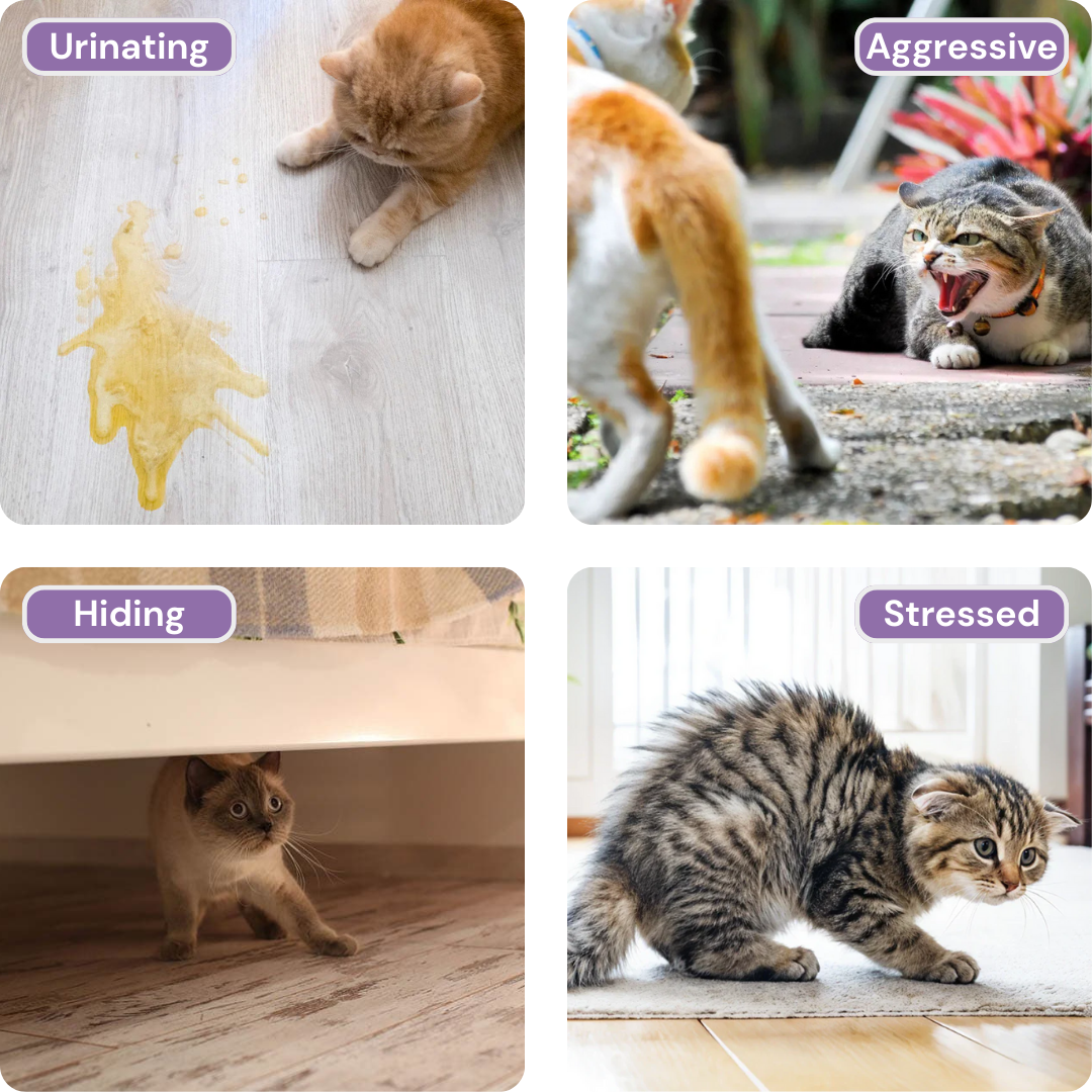 Our diffuser gently releases synthetic calming pheromones that mimic these natural signals, helping your cat relax without changing their personality.